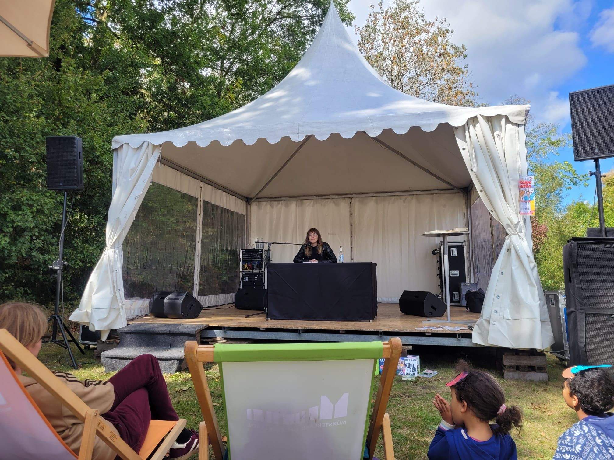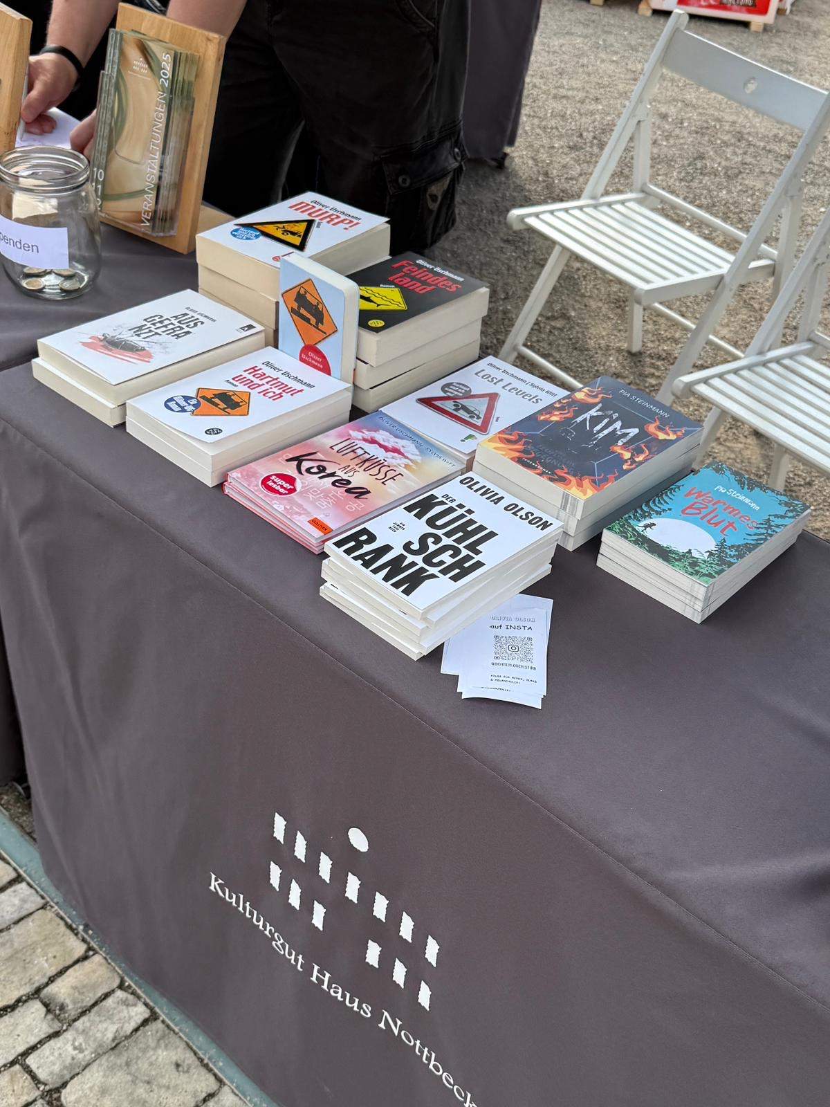 Am 14. September 2025 ist etwas Großartiges passiert, denn ich durfte auf der Offenen Bühne des Literaturmuseums Haus Nottbeck im Rahmen des Büchermarkts live, direkt und in Farbe vorlesen – und zwar das allererste Mal. Ich war sehr aufgeregt, aber ich habe es auch sehr genossen. Meine Familie ist gekommen, meine Freunde waren da (und haben mir sogar Blumen gebracht) und ich habe tolle Menschen kennengelernt. Ich würde es jederzeit wieder tun! Vor Publikum zu lesen hat mich meinem Traum einen ganzen Schritt näher gebracht, und ich bin dem Haus Nottbeck sehr dankbar, dass ich dabei sein durfte. Moderiert wurde die Veranstaltung übrigens vom lieben Oliver Uschmann.